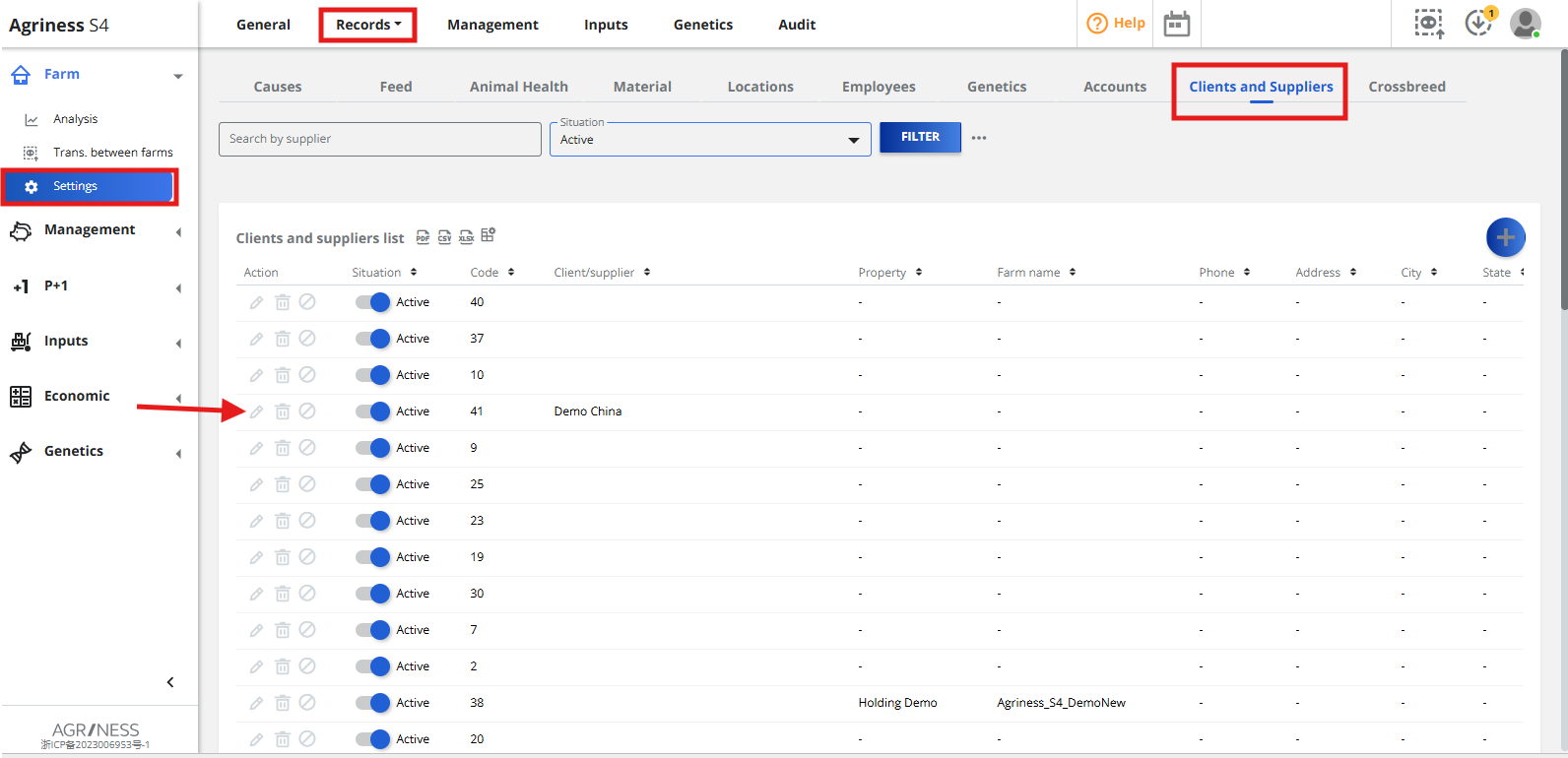 First, go to Farm > Settings > Records > Basics > Clients and Suppliers >