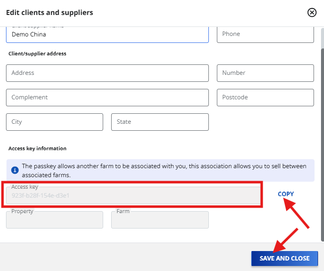 The next step is to send the access key that you copied in the previous step to the customer/supplier.