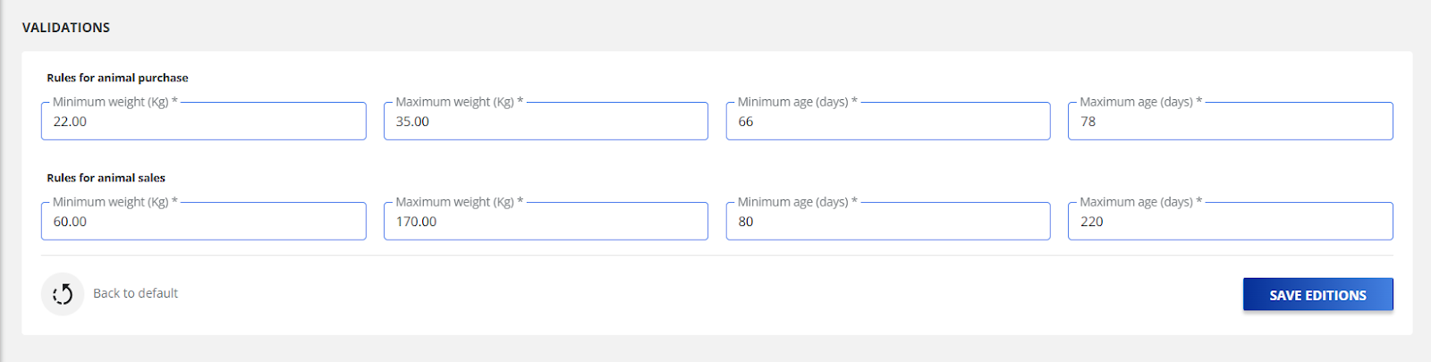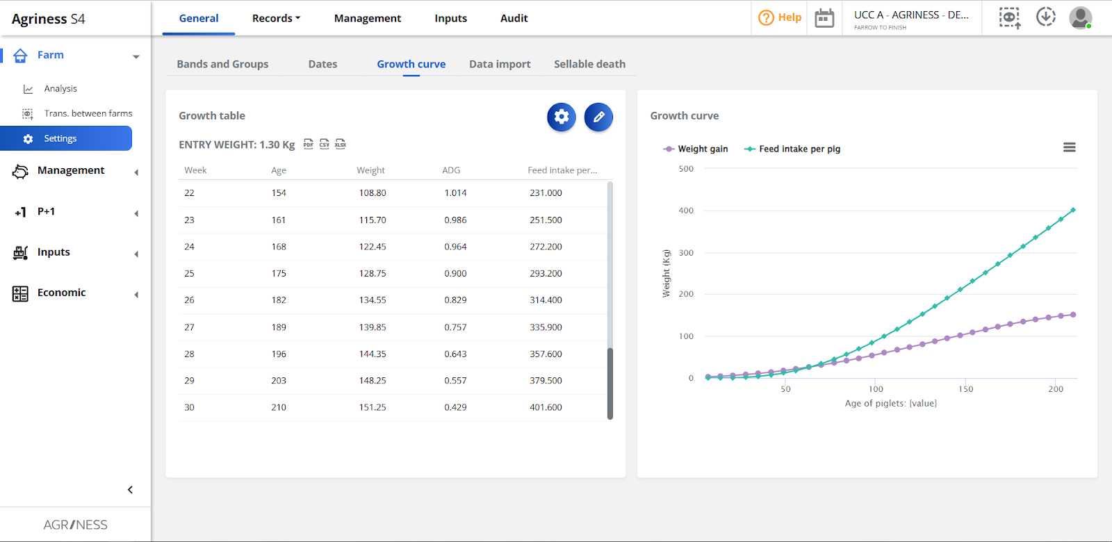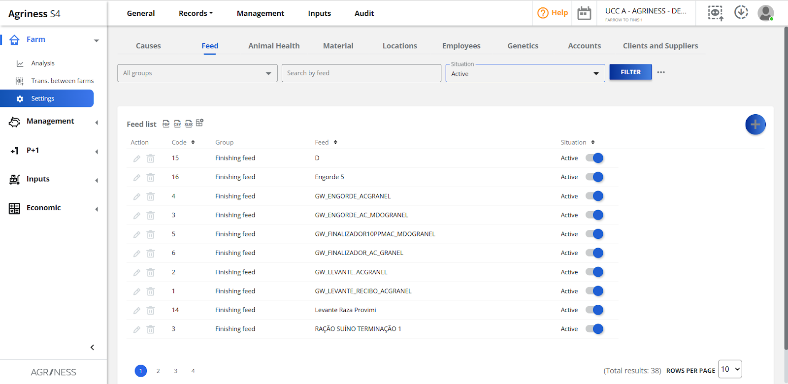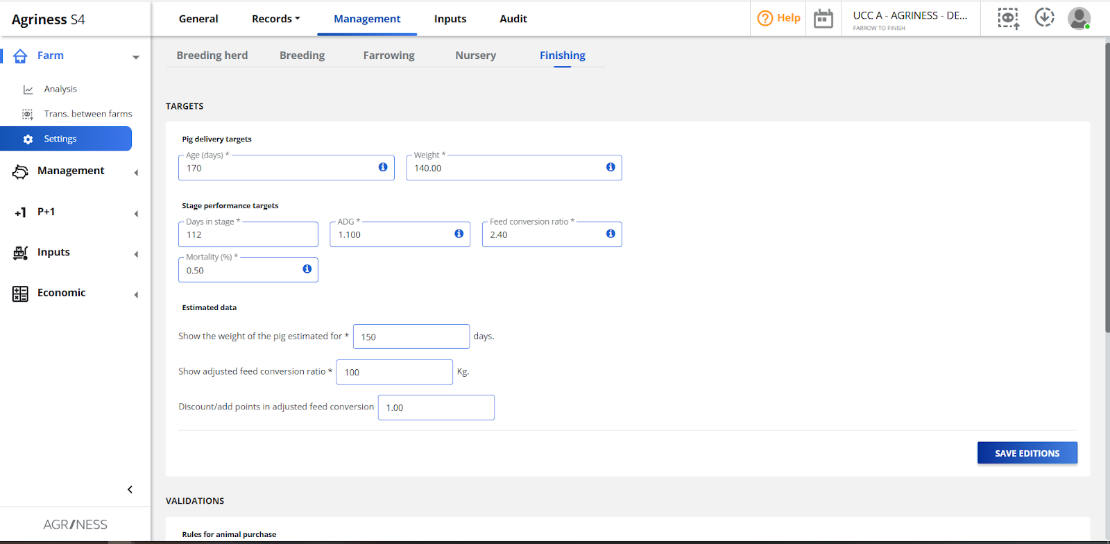 To use the entered data properly, farm settings must be configured first. Based on these settings, S4 will apply specific rules and highlight key points for entries and analyses.
