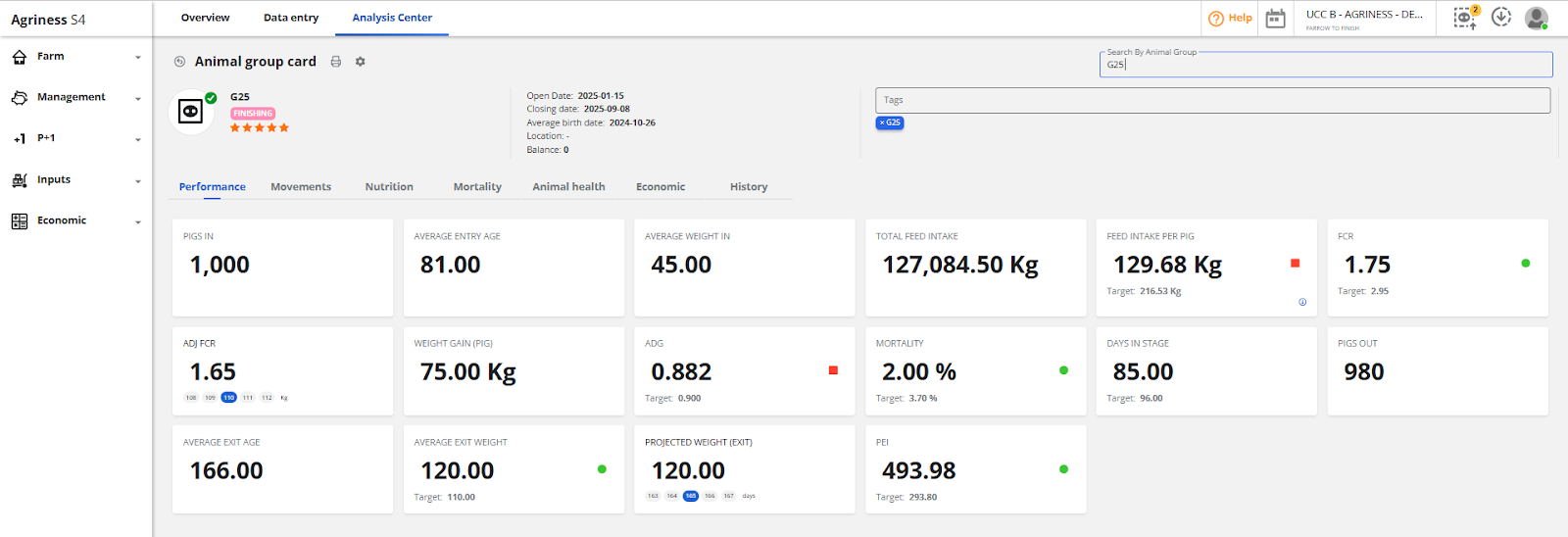 With the data entered, S4 automatically calculates key performance indicators (KPIs). Focus your analysis on the three pillars of performance: ADG, Feed Conversion, Mortality.