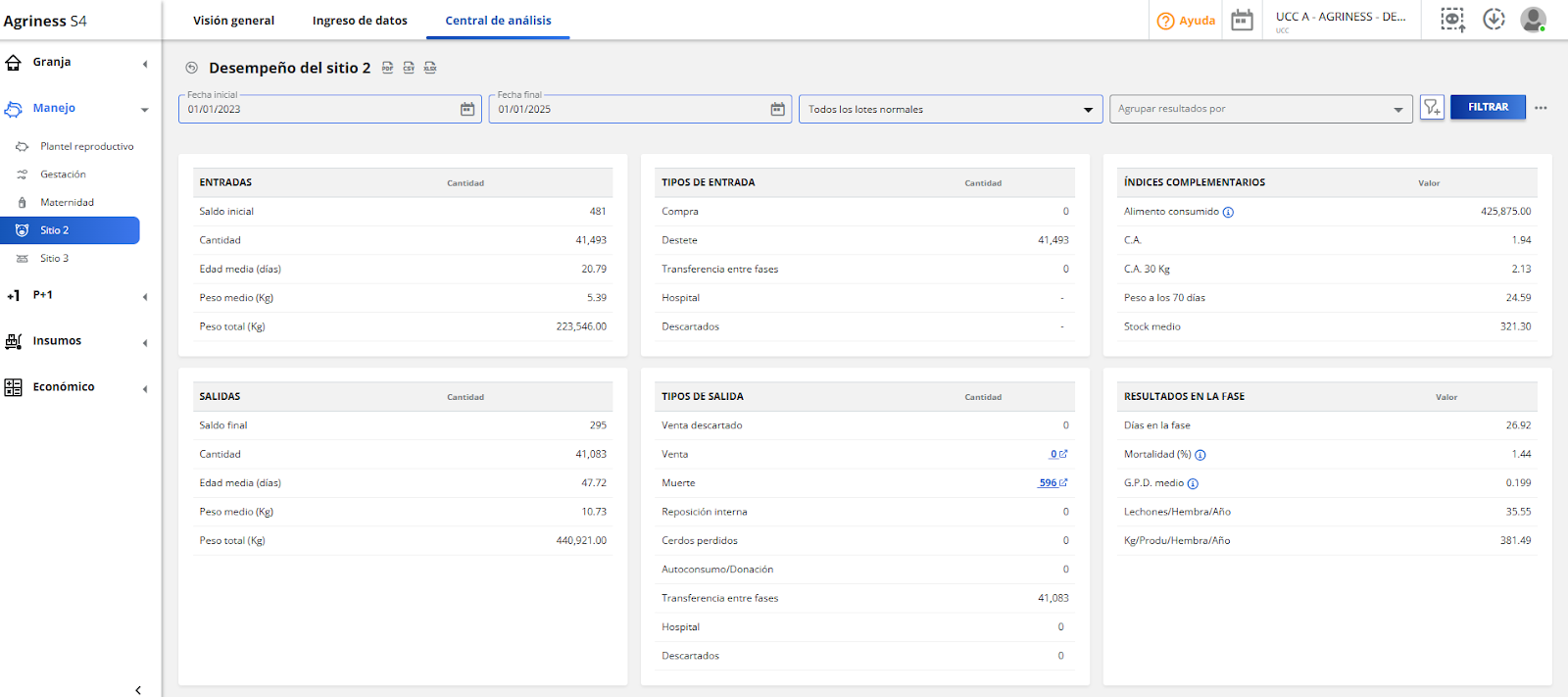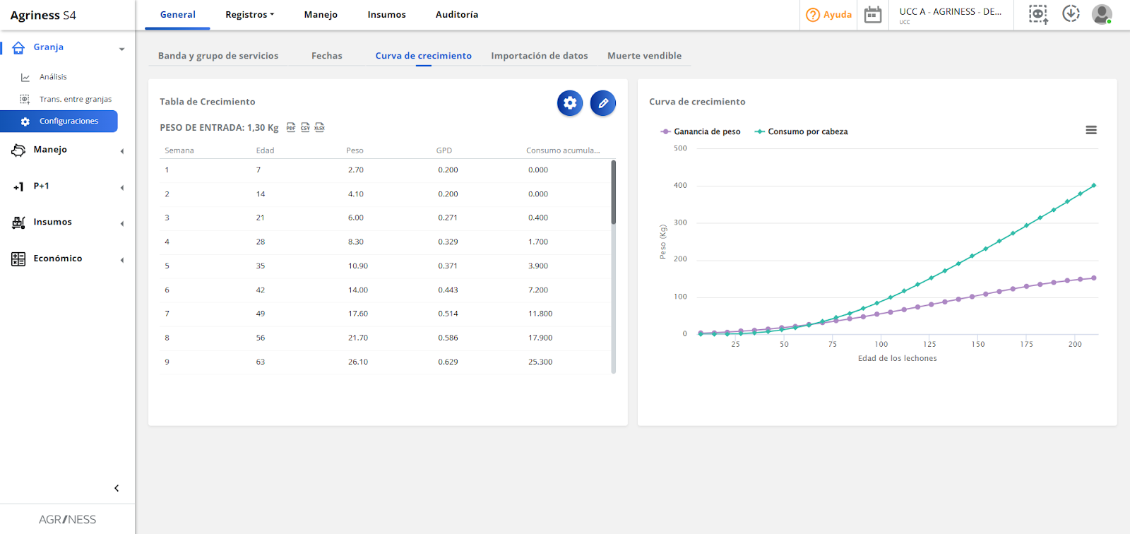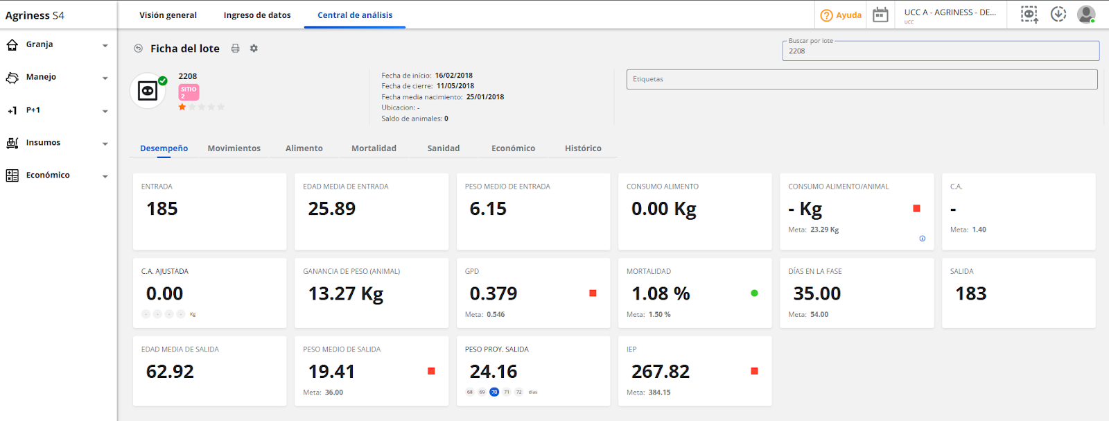 Días en la fase: se encuentra en la mayoría de los informes de rendimiento, ayuda a comprender si el lote alcanzó el peso esperado en el tiempo planificado.