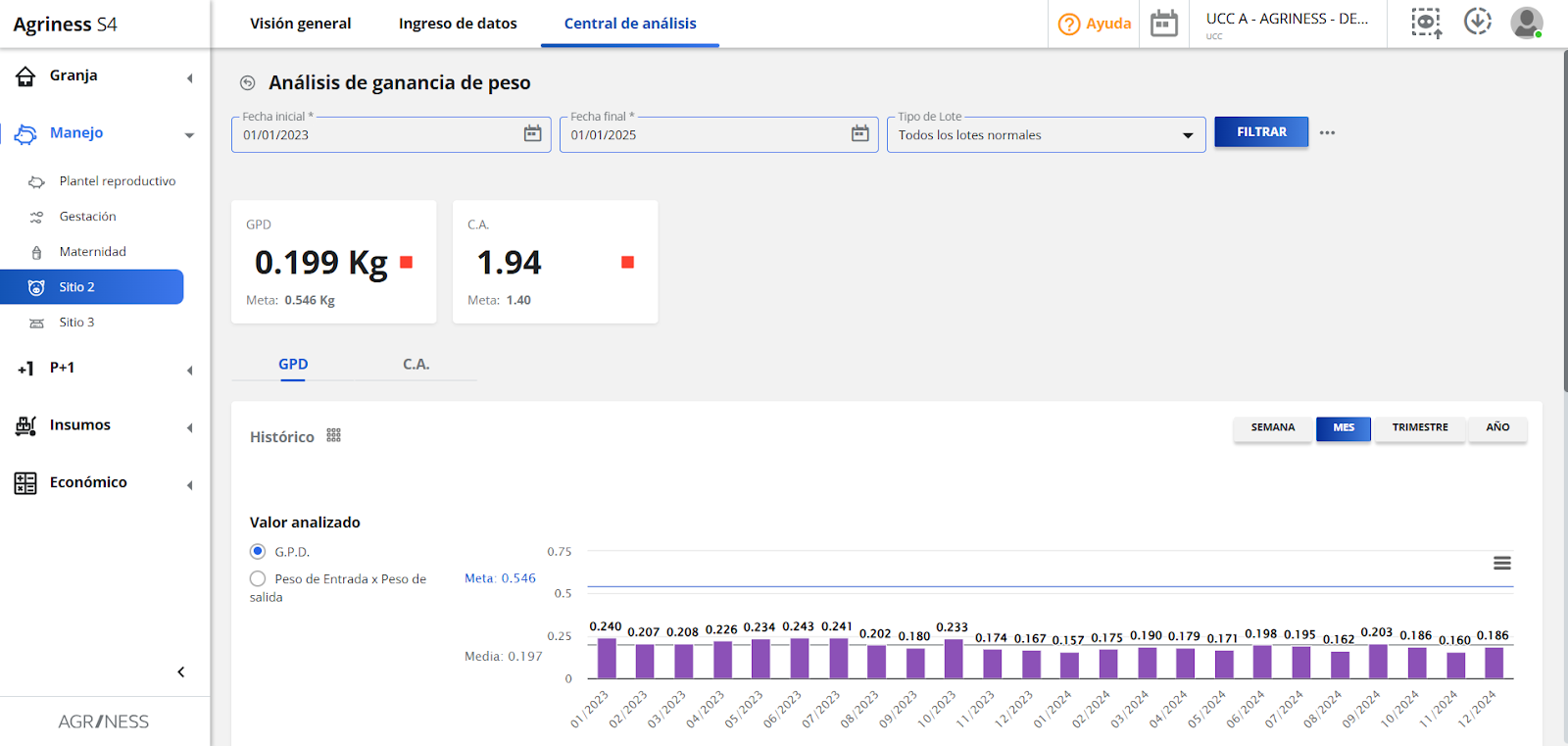 Este indicador se calcula como: (Peso medio de salida - Peso medio de entrada) / Días en la fase.