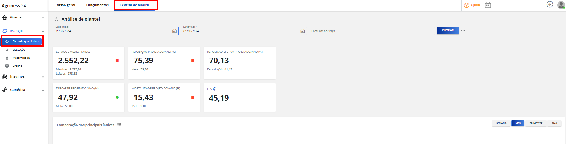 Onde encontrar? Manejo > Plantel reprodutivo > Central de análise > Análise de plantel.