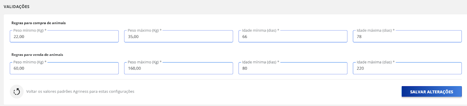⚠️ Para avaliar os custos, todas as transações de compra e venda devem ser registradas com seus respectivos valores, incluindo compras de ração e outros insumos consumidos.