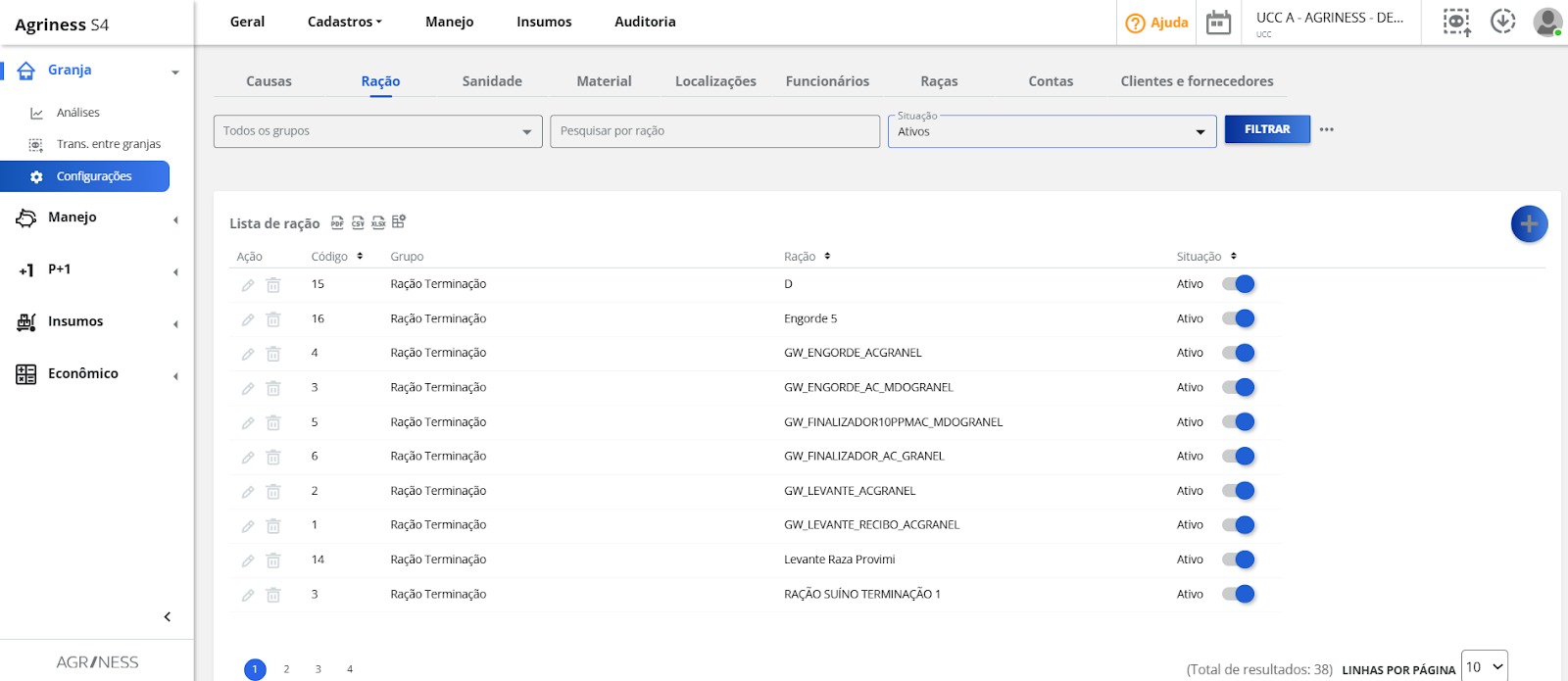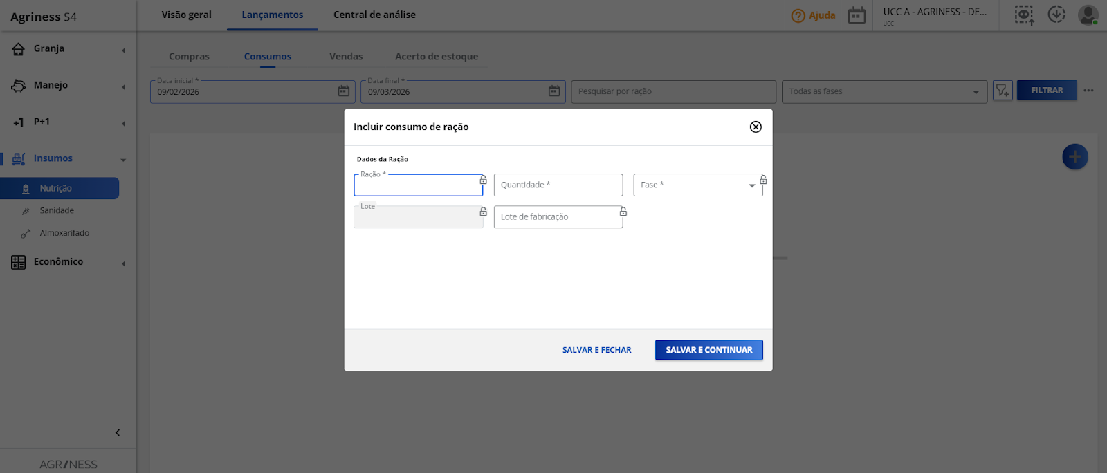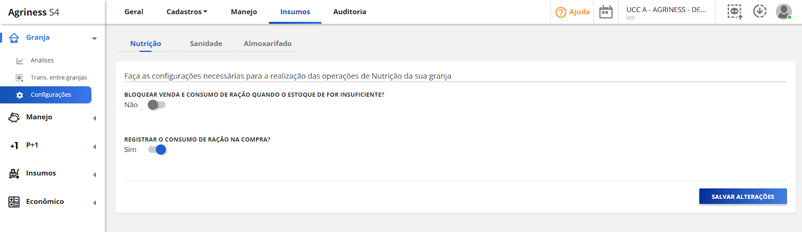 Assim como as configurações nutricionais são importantes, se a granja deseja controlar a compra, o consumo e o estoque de ração com o suporte do S4. Para facilitar as operações da granja, recomendamos habilitar o registro do consumo de ração automático nas configurações de compra.
