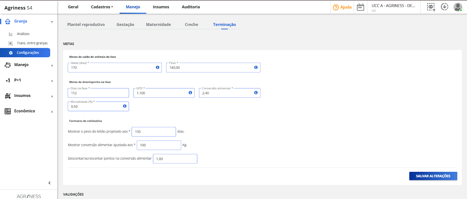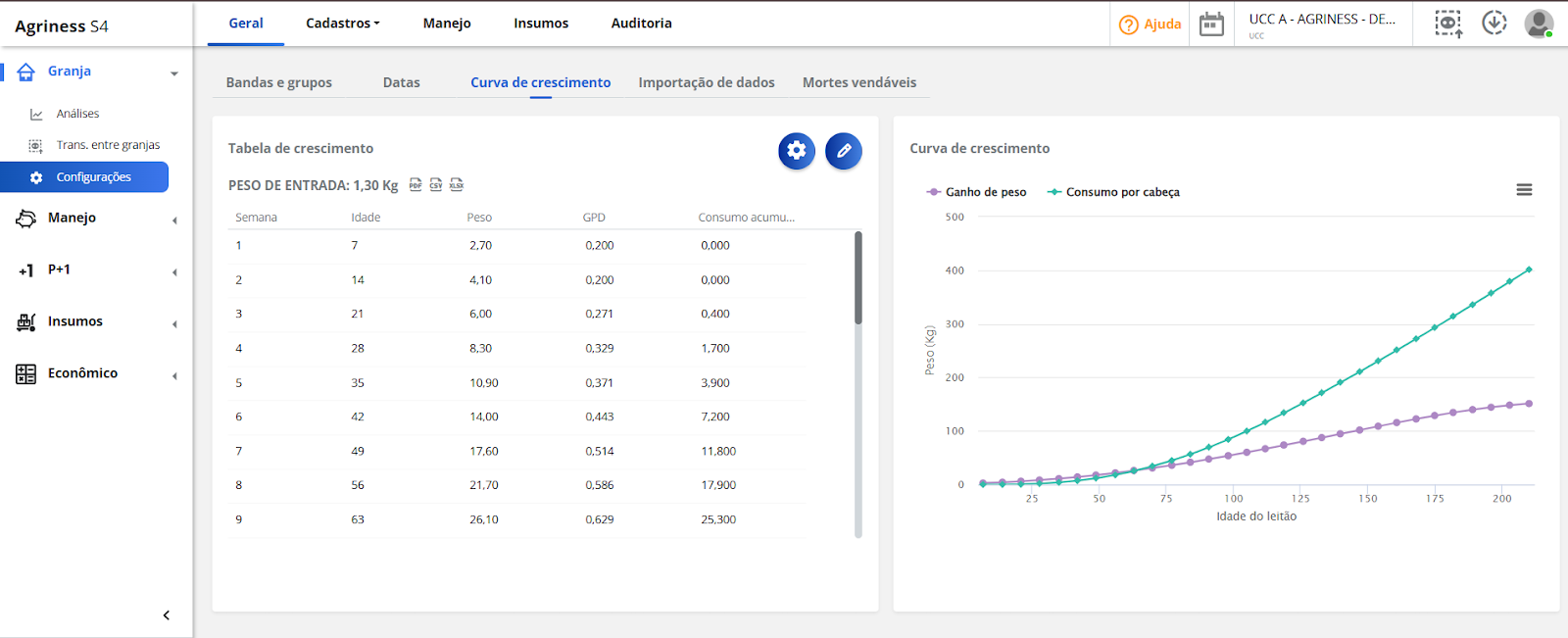 Para utilizar corretamente os dados inseridos, é necessário configurar primeiro as definições da granja. Com base nessas definições, o S4 aplicará regras específicas e destacará pontos-chave para entradas e análises.