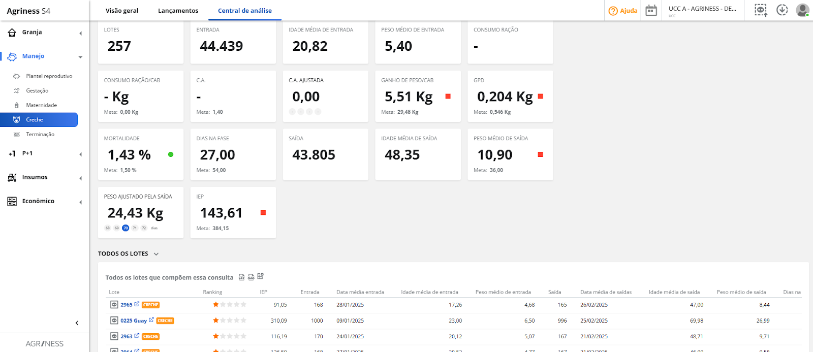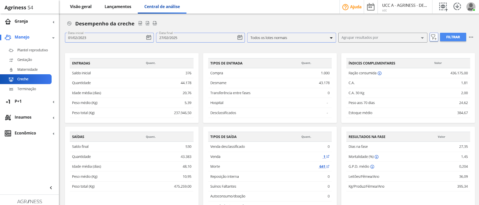 Agriness S4 - Dados e análises sobre creche e terminação