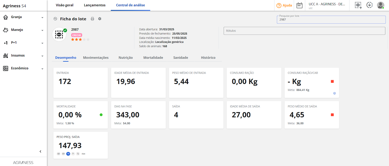 ✨Dica valiosa: utilize o aplicativo móvel Agriness S4 para registrar o máximo de informações possível diretamente na granja — mortalidade, consumo de insumos — garantindo a precisão dos dados e a disponibilidade em tempo real para análise.